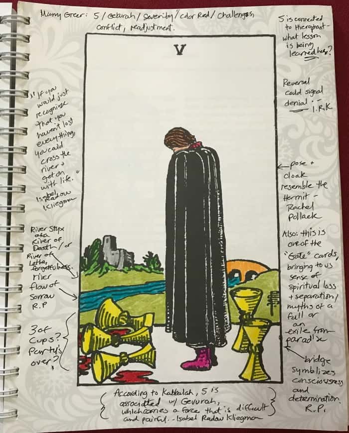 Ta da! That’s my example of my Five of Cups exploration. Now, when I go back to this page, I’ll have some additional insights to help deepen my connection to the card.